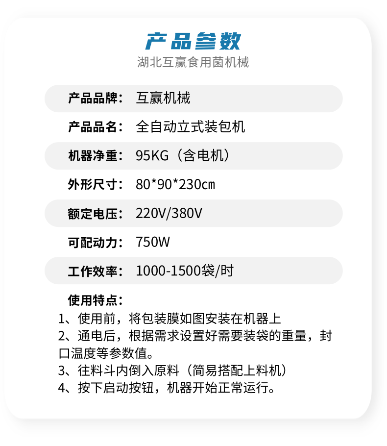 近年來(lái)代料香菇裝袋機(jī)的發(fā)展,越來(lái)越迅猛。其規(guī)模不斷擴(kuò)大,品種不斷增多,地域限制越來(lái)越少。是農(nóng)民增收的可靠保障,也是地方政府的經(jīng)濟(jì)支柱。自動(dòng)套袋食用菌裝袋機(jī)廣泛用在香菇、木耳、平菇、金針菇、茯苓、灰樹(shù)花、姬菇、秀珍菇等食用菌種植領(lǐng)域。是工廠、基地、合作社、家庭農(nóng)場(chǎng)理想的工廠化生產(chǎn)機(jī)械。生產(chǎn)規(guī)模的大小可根據(jù)資金、銷售量、經(jīng)營(yíng)方式、技術(shù)力量、資源條件等綜合因素來(lái)確定,可用單機(jī),也可組合設(shè)計(jì)成半機(jī)械化...