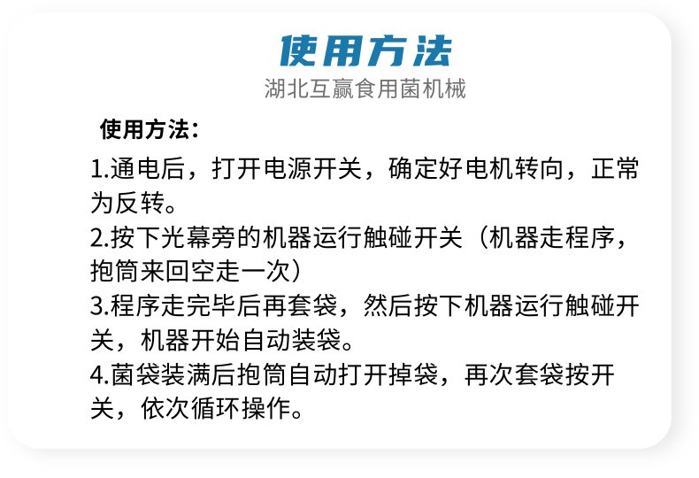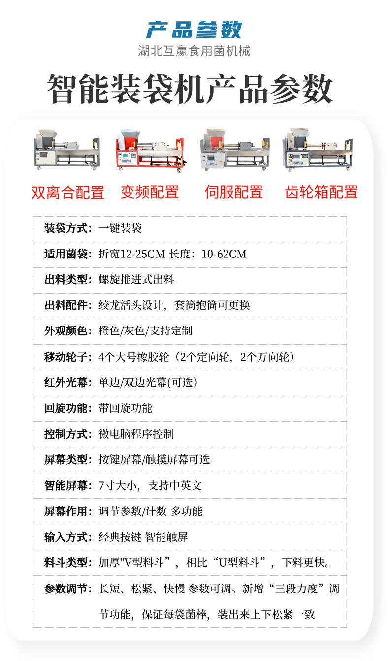 近年來代料香菇裝袋機的發(fā)展,越來越迅猛。其規(guī)模不斷擴大,品種不斷增多,地域限制越來越少。是農民增收的可靠保障,也是地方政府的經(jīng)濟支柱。自動套袋食用菌裝袋機廣泛用在香菇、木耳、平菇、金針菇、茯苓、灰樹花、姬菇、秀珍菇等食用菌種植領域。是工廠、基地、合作社、家庭農場理想的工廠化生產(chǎn)機械。生產(chǎn)規(guī)模的大小可根據(jù)資金、銷售量、經(jīng)營方式、技術力量、資源條件等綜合因素來確定,可用單機,也可組合設計成半機械化...