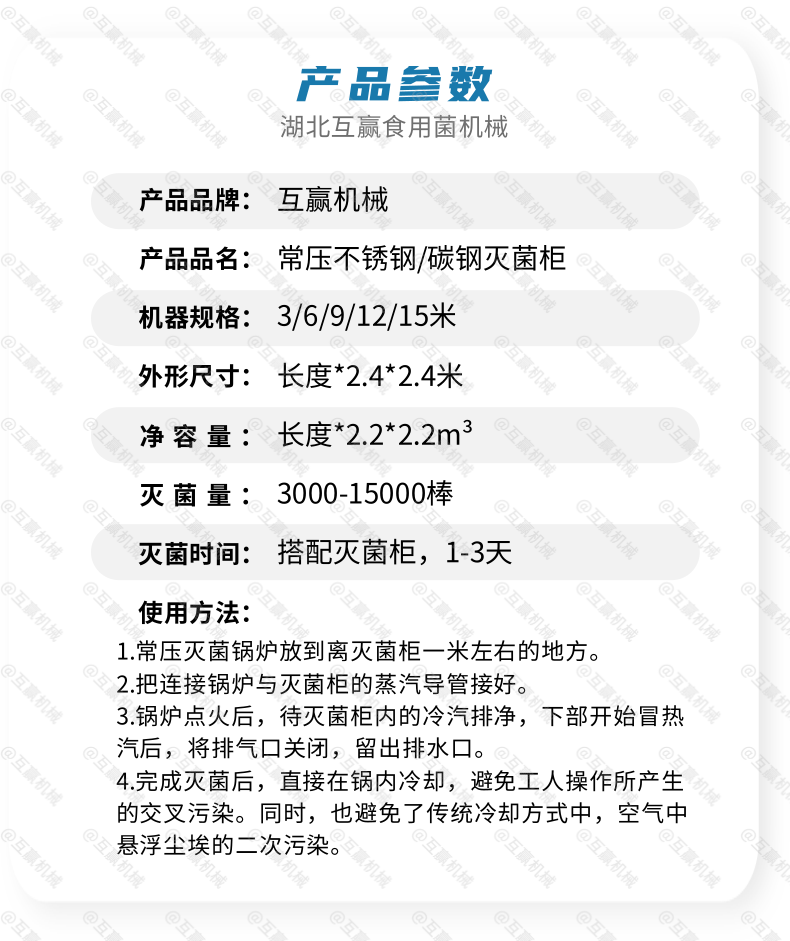 食用菌生產(chǎn)機(jī)械化技術(shù)的主要內(nèi)容是以樹枝、修剪條、鋸木屑和刨花、玉米芯、玉米稈、麥秸、稻草、花生殼、棉籽殼等為主要原料,經(jīng)機(jī)械加工成碎屑狀,添加一定的輔助材料,如麥麩、米糠、豆餅、花生餅、蔗糖、石膏、碳酸鈣、硫酸鎂等,經(jīng)機(jī)械制種、制袋、滅菌、接種、栽培、采收、加工,形成一整套機(jī)械化生產(chǎn)和栽培的技術(shù)規(guī)范。 食用菌常壓滅菌爐滅菌工藝。滅菌工藝一般分高壓滅菌和常壓滅菌。高壓滅菌主要用于制作母種、原種...