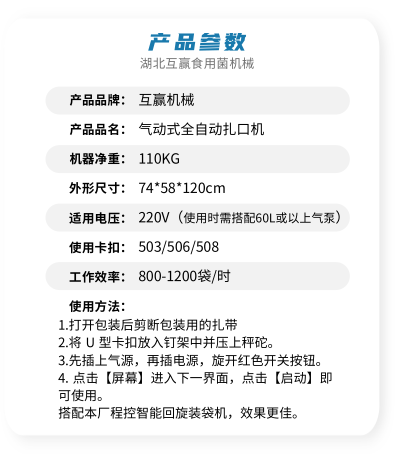 食用菌氣動扎口設備